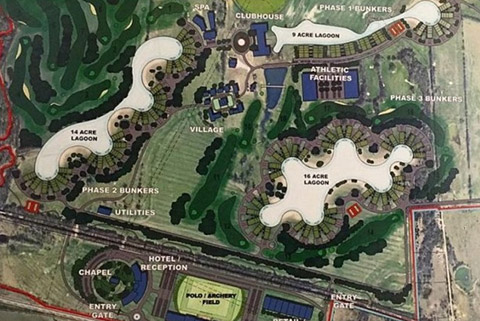 3億7000万円をかけて建設される高さ15メートル、世界最大級の大理石の噴水の周囲にはゴルフ場、乗馬施設、射撃場に小売店、レストランにスパが広がり、ヘリコプター発着場も備える。価格は1戸50万ドル(約5500万円)からで、2018年春から入居可だ。