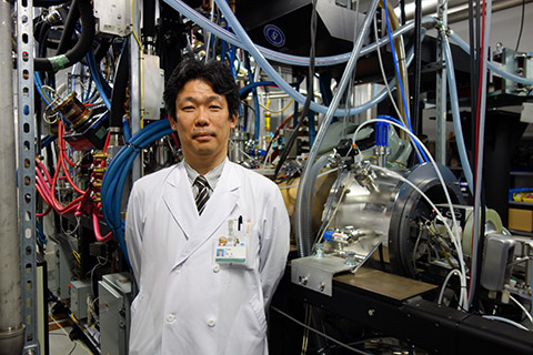 加速器の前に立つ井垣医師
