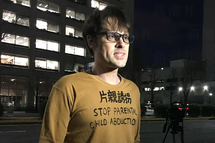今年1月、東京拘置所から保釈後、外国メディアの囲み取材を受けるスコット