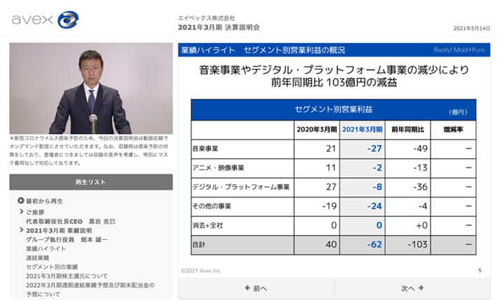 6枚目/6枚中 松浦会長、エイベックス決算「売上40%減」でも裏アカ「フォロワー10倍増」に大はしゃぎ 芸能2021年05月20日 決算説明会では、黒岩社長に続きグループ執行役員が厳しい業績について報告した 0