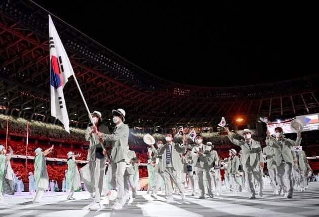 3枚目/4枚中 韓国の五輪、スポーツクライミングも開会式の移動経路も代表ユニフォームも「旭日旗」認定という難癖オンパレード 韓国・北朝鮮2021年08月10日 開会式にも旭日旗のイメージを読み取ったという 0