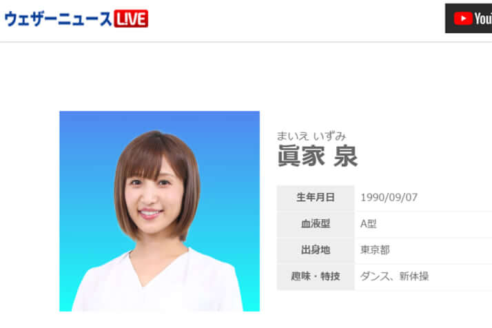 眞家 泉(「ウェザーニュースLiVE」のHPより)