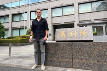 【写真】「連れ去り」は国際問題にもなっている。今年7月、国立競技場前で「連れ去り」被害を訴えハンガーストライキを決行したフランス人男性