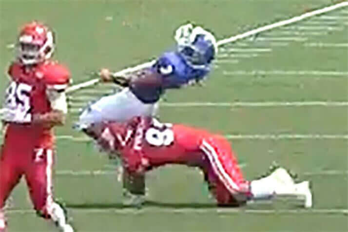 5枚目/5枚中 「日大背任事件」井ノ口容疑者が“タックル学生”を逆恨みして画策したあり得ない“嫌がらせ” 社会2021年11月03日 宮川選手が日大時代に起こした”反則タックル”(関西学院大学アメリカンフットボール部提供) 0