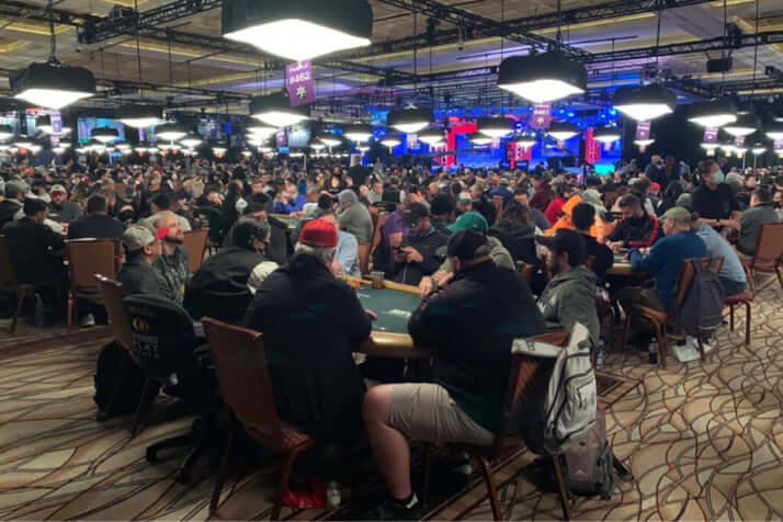 2枚目/5枚中 YouTuberてんちむも参戦 ラスベガスで開催中の参加費114万円「世界ポーカー大会」に大挙する日本人 エンタメ2021年11月13日 見渡す限りポーカーテーブルで埋め尽くされたWSOP会場。参加費1万ドルの「メインイベント」に今年は6650人が参加した 0