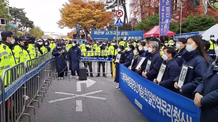 3枚目/6枚中 韓国・慰安婦像前のデモ再開で「被害者に公式謝罪をしろ!」 法律違反の反日団体の取り締まりに警察が及び腰なワケ 韓国・北朝鮮2021年11月18日 慰霊写真を持って違法デモを行う「反日行動」 0