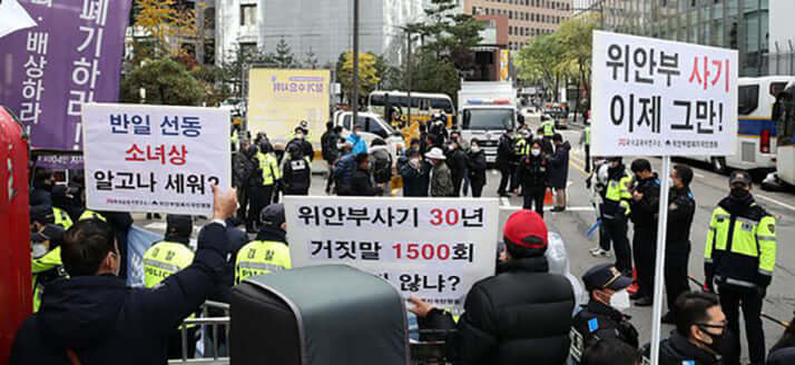4枚目/6枚中 韓国・慰安婦像前のデモ再開で「被害者に公式謝罪をしろ!」 法律違反の反日団体の取り締まりに警察が及び腰なワケ 韓国・北朝鮮2021年11月18日 自由連帯の正当な要求に応じない反日行動 0