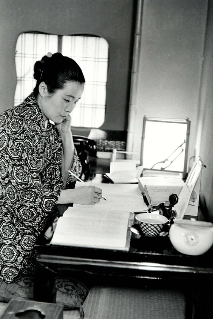執筆中の瀬戸内寂聴(晴美・当時)さん(1963年7月)