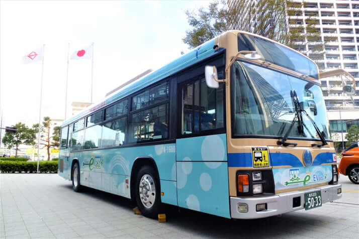 日産自動車リーフの技術を応用したEVバス改造車(写真は横浜市営バス)。