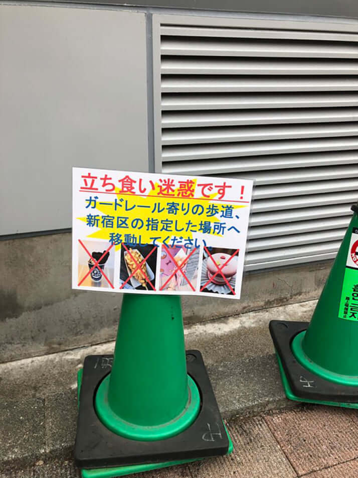 立ち食いに注意を促す貼り紙も