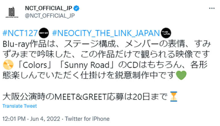 8枚目/14枚中 「BTS」がヘイト反対声明も 東京ドーム中継で差別演出?韓流アイドル「NCT」“日本人外し”の波紋 芸能2022年06月08日 ブルーレイはWOWOWの中継映像とは違うことを暗にアピール?( 「NCT_OFFICIAL_JP」 ツイッターより) 0