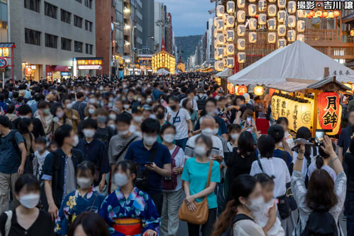 そんな中、3年ぶりに開催された京都の祇園祭。真夏の屋外であるにもかかわらず、9割以上の市民がマスクを着けている。