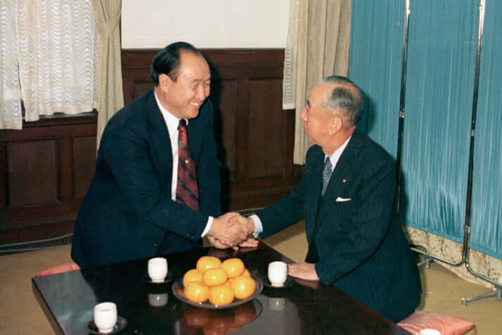 文鮮明と握手する岸信介元総理