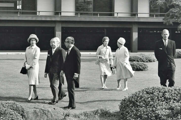 皇居・宮殿南庭で昭和天皇らと。撮影・田沢 進