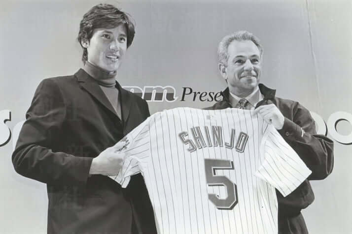 8枚目/10枚中 【日本人大リーガー・写真スペシャル】パイオニア「NOMO」から「ビッグボス」まで 野球2022年09月27日 新庄剛志 ニューヨーク・メッツに入団。ボビー・バレンタイン監督と(2000年12月) 0