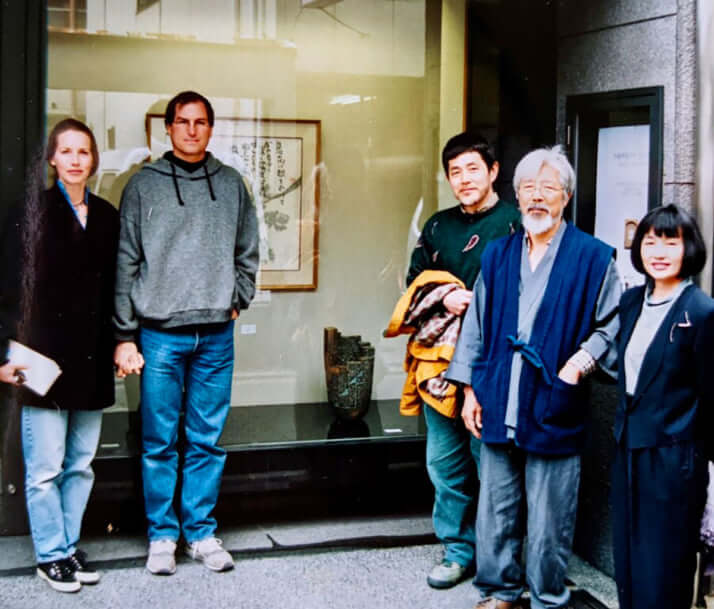 4枚目/7枚中 スティーブ・ジョブズは、なにがなんでもイサム・ノグチが欲しかった! 社会2022年10月22日 京都の「ギャルリー正觀堂」前で、左よりジョブズ夫妻、大平和正氏、加島祥造氏、大平夫人。写真©金子勝二 0