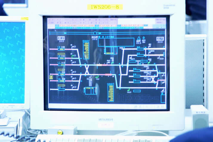 新幹線の頭脳と言える総合指令所のモニタ装置に表示された東海道・山陽新幹線東京駅のホームの番号。番号を変えるとなるとコンピューターシステムを改修する必要があり、大変な手間となるのは間違いない。新幹線第2総合指令所にて 2005年12月3日 JR東海の担当者立ち会いのもと筆者撮影