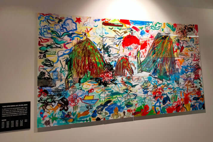 2枚目/6枚中 韓国の「独島体験館」が2倍の広さに拡張されていた 子供向け展示が充実で「次世代にも偽りの歴史が…」と危惧する声 韓国・北朝鮮2022年11月28日 画家・李鐘祥と約30人の子供たちがイベントで描いた絵画 0