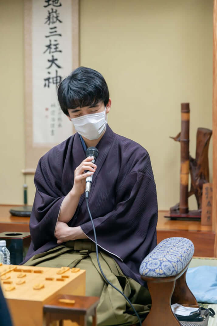 敗戦の弁を語る藤井(日本将棋連盟提供)