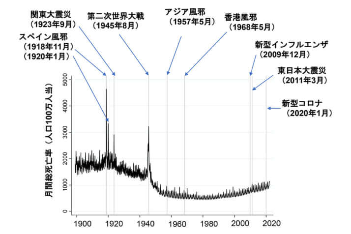 過去100年の日本の死亡率変遷(浦島充佳教授・作成)