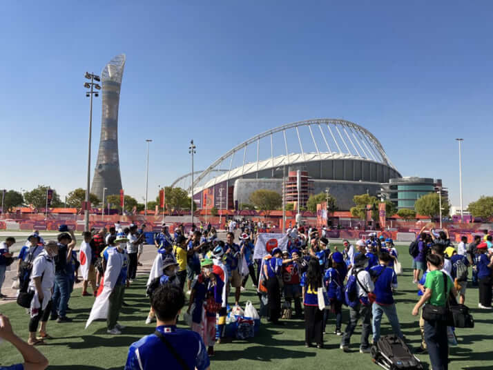 8枚目/11枚中 「観戦チケットは俺の月給と同額……」 人口の9割が「出稼ぎ労働者」、W杯開催地“カタール”の深刻すぎる格差 スポーツ2022年12月15日 多くの日本サポーターが集まった「ハリーファ国際スタジアム」 0