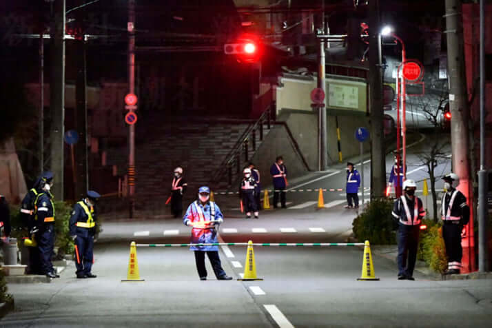 会場に通じる道に登場した愛知県警の“関所”