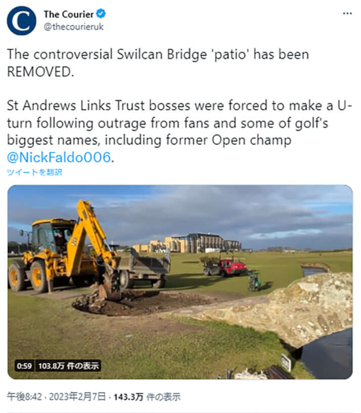 5枚目/8枚中 ゴルフファン憧れの2つの名所が工事中 セント・アンドリュースの“不格好すぎる橋”の改修に非難殺到 スポーツ2023年02月09日 ショベルカーで石畳を取り除く様子(The CourierのTwitterより) 0