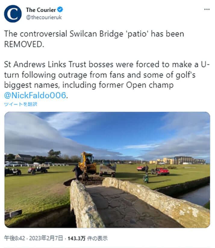 7枚目/8枚中 ゴルフファン憧れの2つの名所が工事中 セント・アンドリュースの“不格好すぎる橋”の改修に非難殺到 スポーツ2023年02月09日 ショベルカーで石畳を取り除く様子(The CourierのTwitterより) 0
