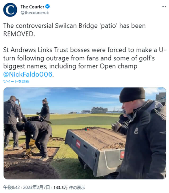 8枚目/8枚中 ゴルフファン憧れの2つの名所が工事中 セント・アンドリュースの“不格好すぎる橋”の改修に非難殺到 スポーツ2023年02月09日 ショベルカーで石畳を取り除く様子(The CourierのTwitterより) 0