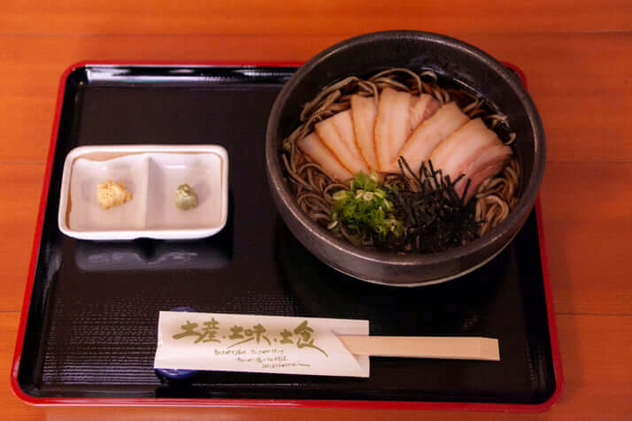 2日目昼食藤井五冠「おおち山くじら猪肉そば」(日本将棋連盟提供)