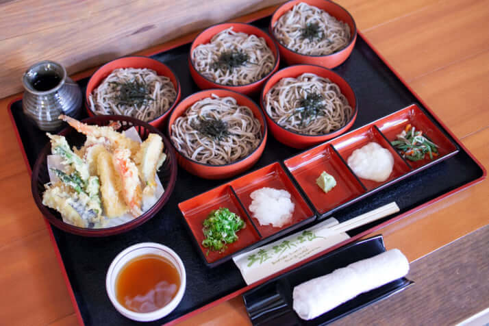 1日目昼食羽生九段「そば三昧」(日本将棋連盟提供)