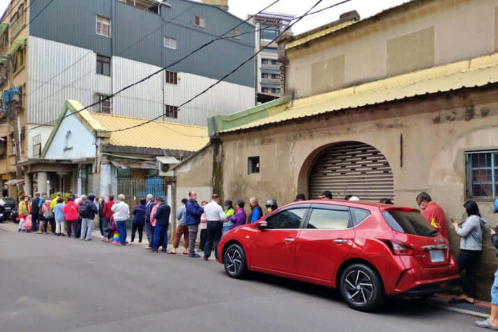 3枚目/6枚中 「卵不足」は日本より台湾の方が深刻 「ひとり10個」に大行列、宿泊したら“雛プレゼント”も大人気 国際2023年03月26日 朝7時半、農會(農協)の前に並ぶ人々。開店まであと30分ある(撮影:林綾子) 0