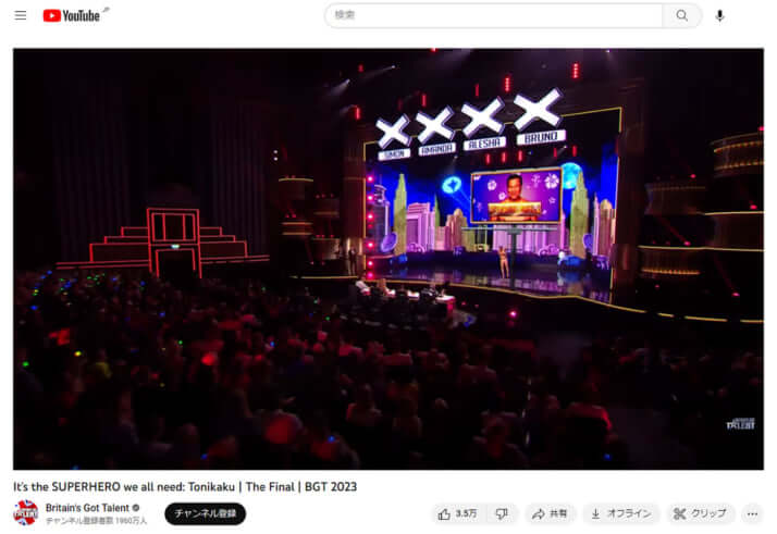 3枚目/6枚中 とにかく明るい安村 イギリスで“全裸ポーズ芸”はなぜ大ウケしたのか 芸能2023年06月06日 3度の出演では常に会場を一体化させていた:Britain's Got Talent公式YouTubeちゃんね須(@BGT)より 0