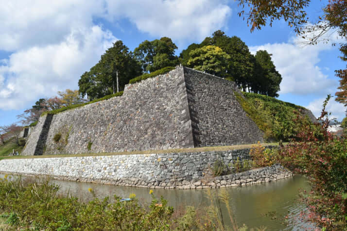 【篠山城】正方形に近い本丸を高い石垣が囲む(右は天守台)