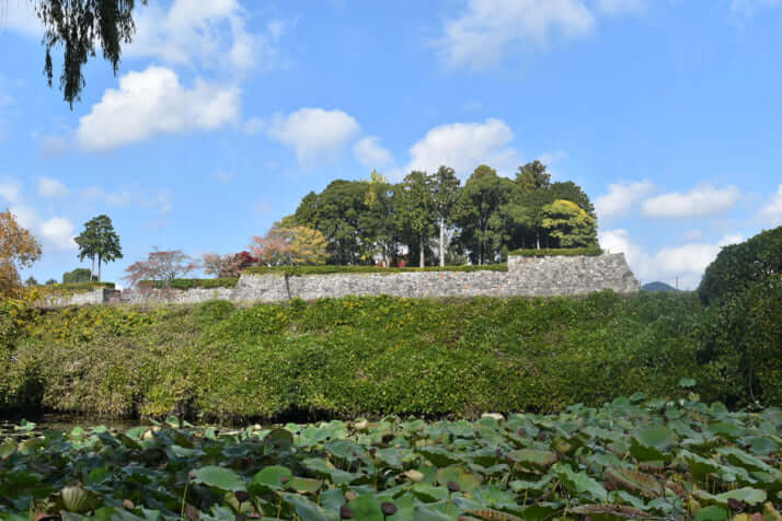 【篠山城】広大な外堀から本丸の高い石垣を望む
