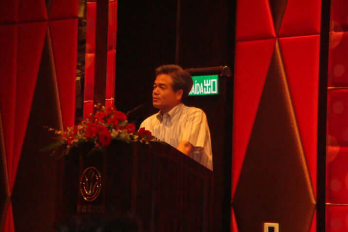5枚目/7枚中 スーツは「洋服の青山」で新幹線は普通席…ビッグモーター・兼重宏行社長の「ドケチ伝説」と2代目「MBA息子」の“傲慢LINE説教” 社会2023年07月21日 褒賞旅行中の食事会で挨拶する兼重社長 0
