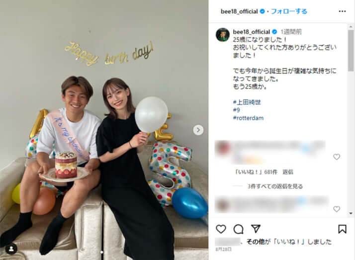 4枚目/12枚中 【ドイツ戦】森保監督は公言通りの戦いで圧勝、名将・クリンスマン監督を招聘しても結果の出ない韓国代表との違い スポーツ2023年09月12日 上田綺世のInstagramより(上田綺世と妻でモデルの由布菜月) 0