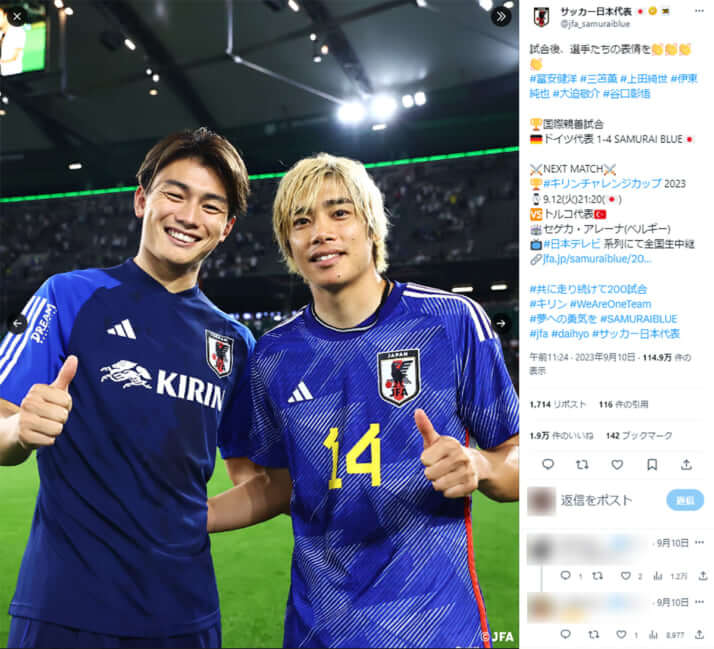 9枚目/12枚中 【ドイツ戦】森保監督は公言通りの戦いで圧勝、名将・クリンスマン監督を招聘しても結果の出ない韓国代表との違い スポーツ2023年09月12日 上田綺世と伊東純也(サッカー日本代表公式Xより) 0