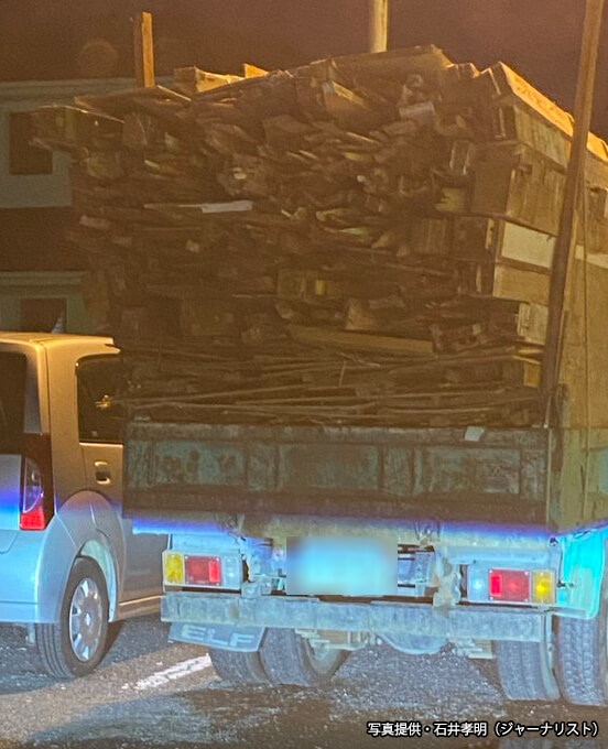 荷台いっぱいに積まれた廃材が今にも荷崩れしそうなトラック。まるで中国の過積載を捉えた衝撃映像のようだ。倒壊する寸前のジェンガのようというか、これで崩れ落ちないほうが不思議という印象を持つ方は多いのではないか。