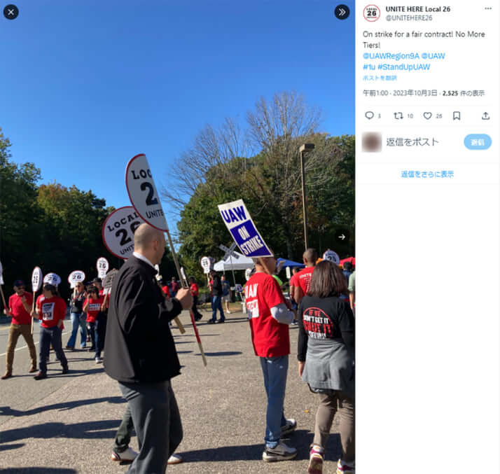4枚目/6枚中 現役大統領として初めてストに参加…バイデン政権の労組重視の裏に「AI失業」という難題 国際2023年10月05日 UNITE HERE Local 26公式X(@unitehere26)より 0