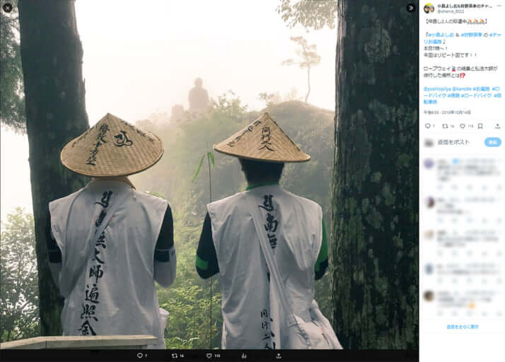 9枚目/9枚中 「頑張ってください」はNG…「四国遍路」への誤解、そのせいで起きているトラブルの数々を反骨の言語学者“F爺”が解説 社会2023年10月22日 「小島よしお&狩野英孝のチャリお遍路」のX(Twitter)より 0