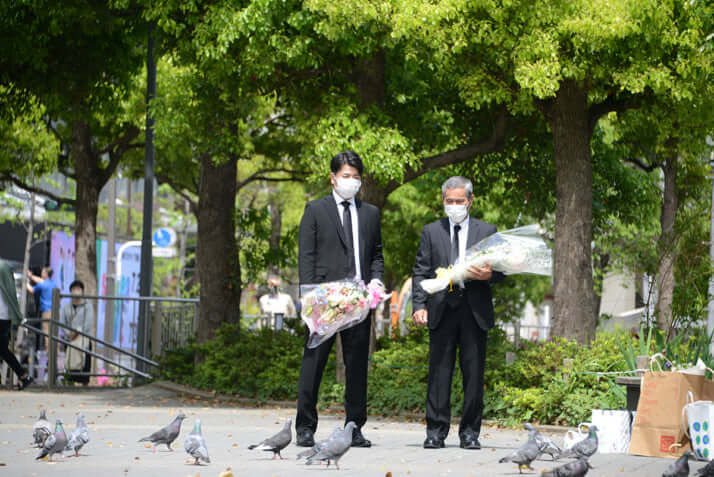 9枚目/18枚中 「池袋暴走」、受刑者側に賠償命令…整備士だった“被害者実父”がどうしても許せなかった「事故は車のせい」という責任逃れ 社会2023年11月02日 花を手に慰霊碑へ向かう松永さんと上原さん 0