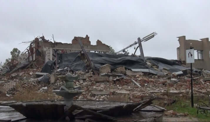 2枚目/21枚中 市民ボランティアはゼレンスキーも政府も全く信用していなかった…食糧不足について、彼らが明かした原因とは【ウクライナ最前線レポート】 国際2023年11月23日 フリアポレ町の文化センター。完全に破壊されて瓦礫になっている。ロシア軍は劇場や学校、文化施設まで攻撃している 0