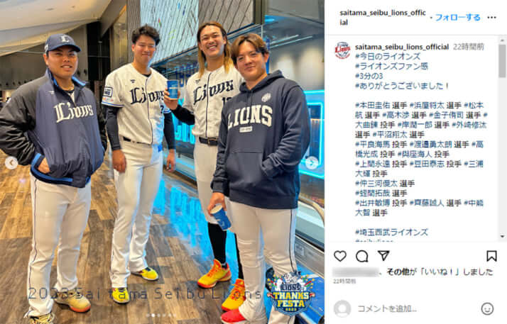 4枚目/4枚中 山川穂高は西武「ファン感謝イベント」に不参加 来年のカレンダーには…移籍話はどうなっているのか 野球2023年11月28日 参加した選手たちも楽しんでいた(埼玉西武ライオンズの公式Instagramより) 0