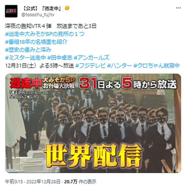 「逃走中」公式Xより