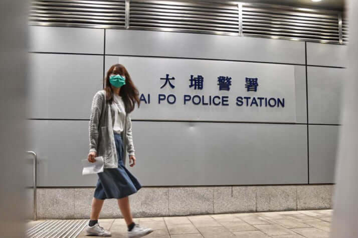 拘留されたのち、大埔警察署を離れることを許可された周庭さん(Pakkin Leung@Rice Post, CC BY 4.0 , via Wikimedia Commons)