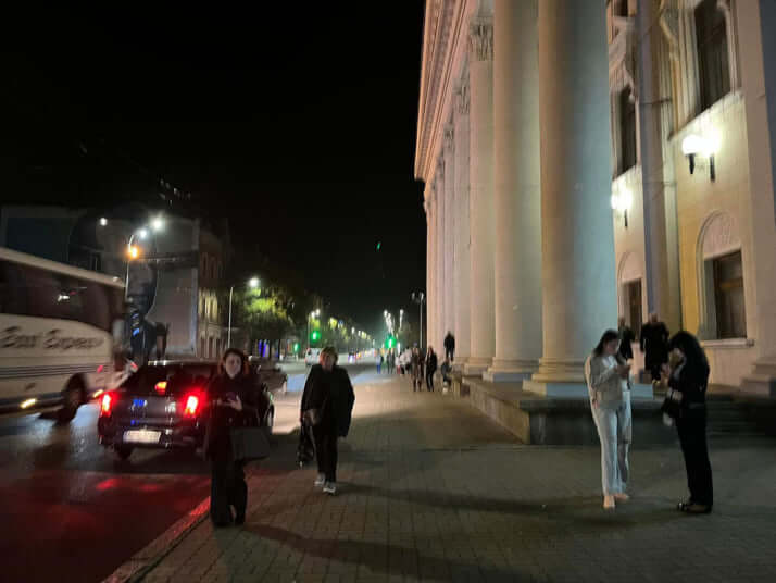 16枚目/20枚中 空襲警報が鳴っても平然と買い物…戦場から20kmの町で聞いた市民の本音【ウクライナ最前線リポート】 国際2023年12月10日 夜8時すぎ、劇場のオペラ上演が終わって観客が出てきた。外出禁止時間が始まる9時を前に家路につく