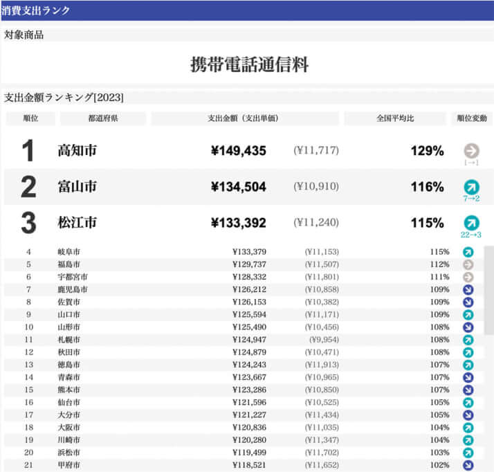 2枚目/5枚中 携帯料金を最も“搾取”されている都市はどこ? 家計調査でわかった意外な事実 ビジネス2024年03月11日 「家計調査結果」(総務省統計局)を基に株式会社ロイヤリティ マーケティング集計 0