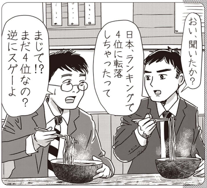 事実を伝えただけの記事なのに、日本にとってネガティブな話題に対しては耳を覆って「あーあー聞こえない」とやりたいお方のようです。さらには「順位がすべてではない。日本は治安がいいし、メシはウマいし、インフラは整っている。日本語だけで仕事ができるから外を見る必要はない」なんて開き直る意見まで出る始末。