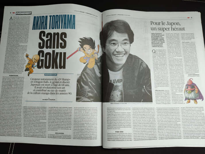 7枚目/11枚中 鳥山明さんはフランスでいかに愛されていたか 大統領も首相も追悼、ドラゴンボールが与えた凄すぎる影響 国際2024年03月24日 Liberation紙は3ページを割いて追悼記事を掲載した 0